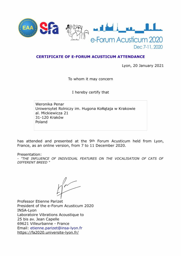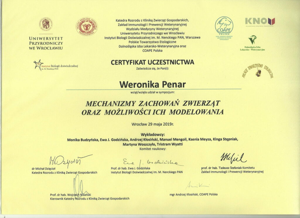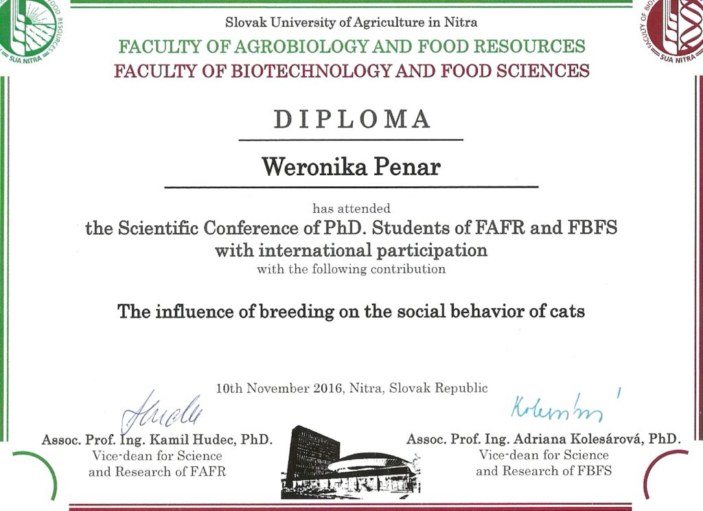 Cały czas powiększam swoją wiedzę jako uczestniczka wielu seminariów, kursów i konferencji naukowych – zarówno krajowych jak i międzynarodowych. Jestem również autorką wielu publikacji naukowych o kotach i szeroko pojętej bioakustyce. Wiedzy o kotach nigdy dość!